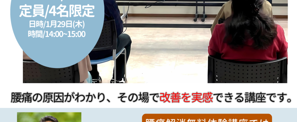 1月29日木曜日14時より、腰痛解消無料体験講座を開催いたします❕